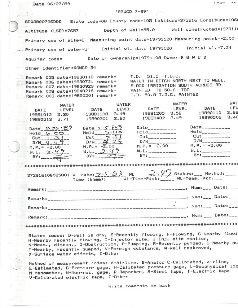 RG54 Field Measurement for 07/1989