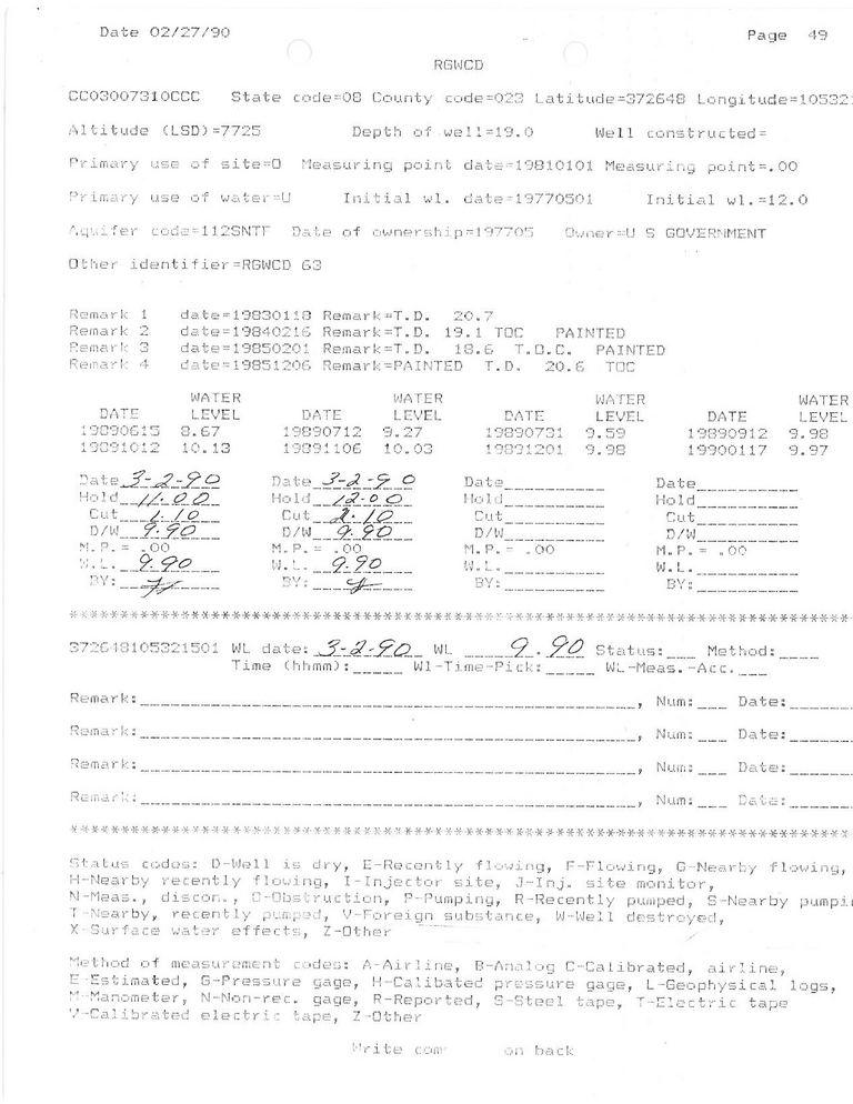 RG63 Field Measurement for 03/1990