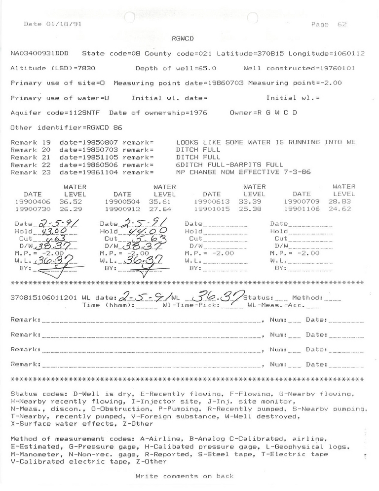 RG86 Field Measurement for 02/1991