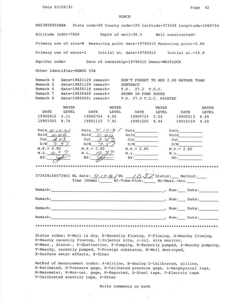 RG53A Field Measurement for 04/1991
