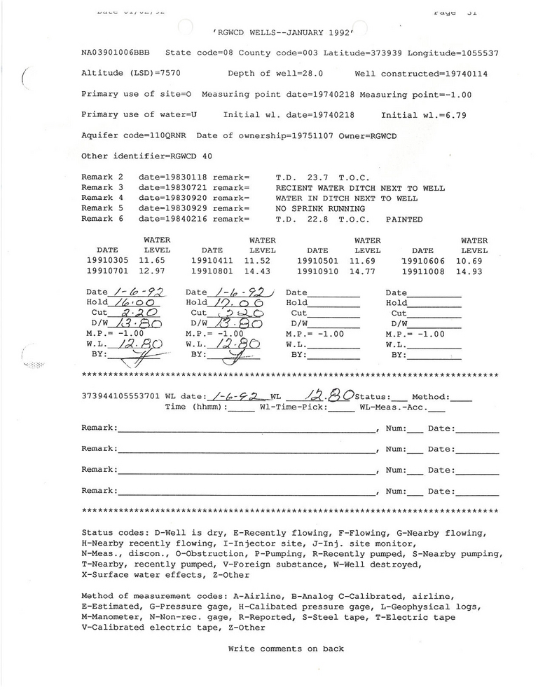 RG40 Field Measurement for 01/1992