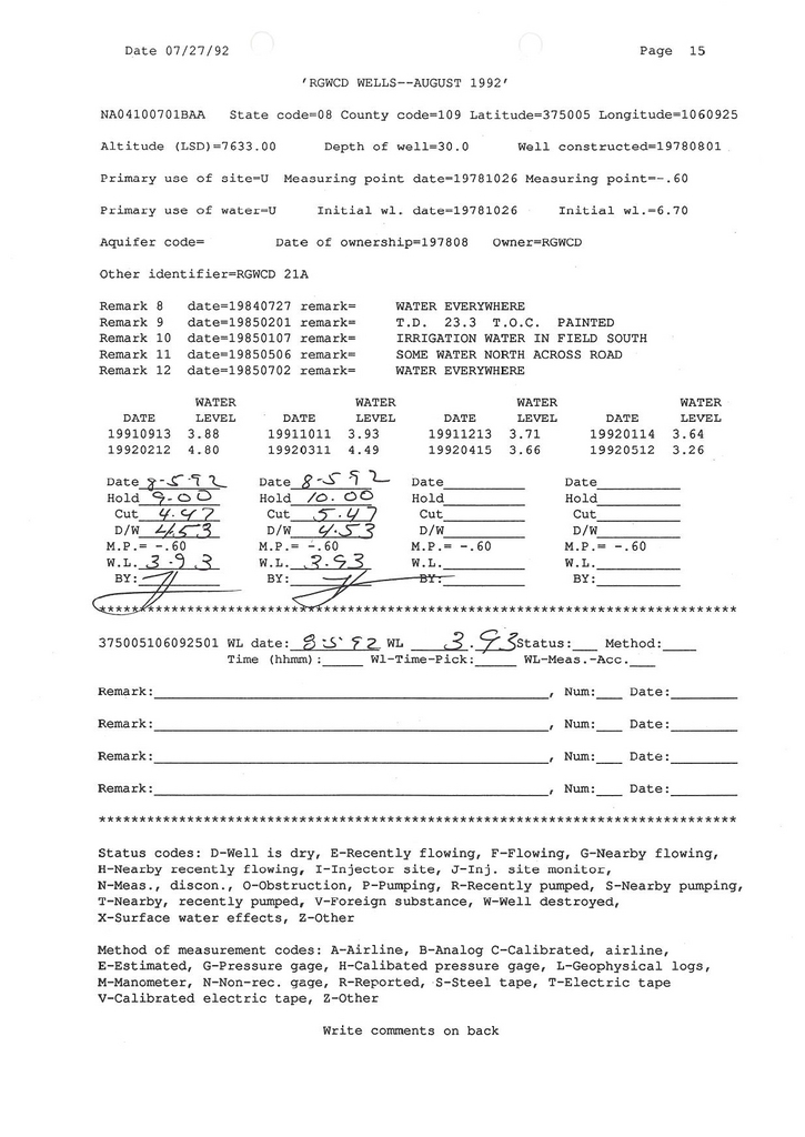 RG21A Field Measurement for 08/1992