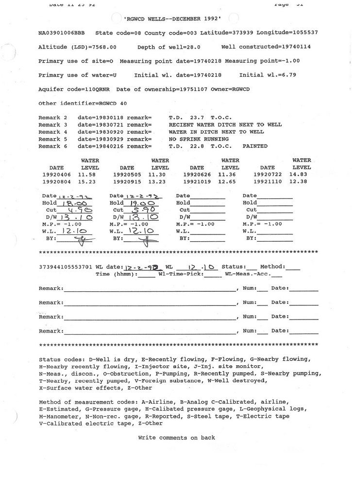 RG40 Field Measurement for 12/1992