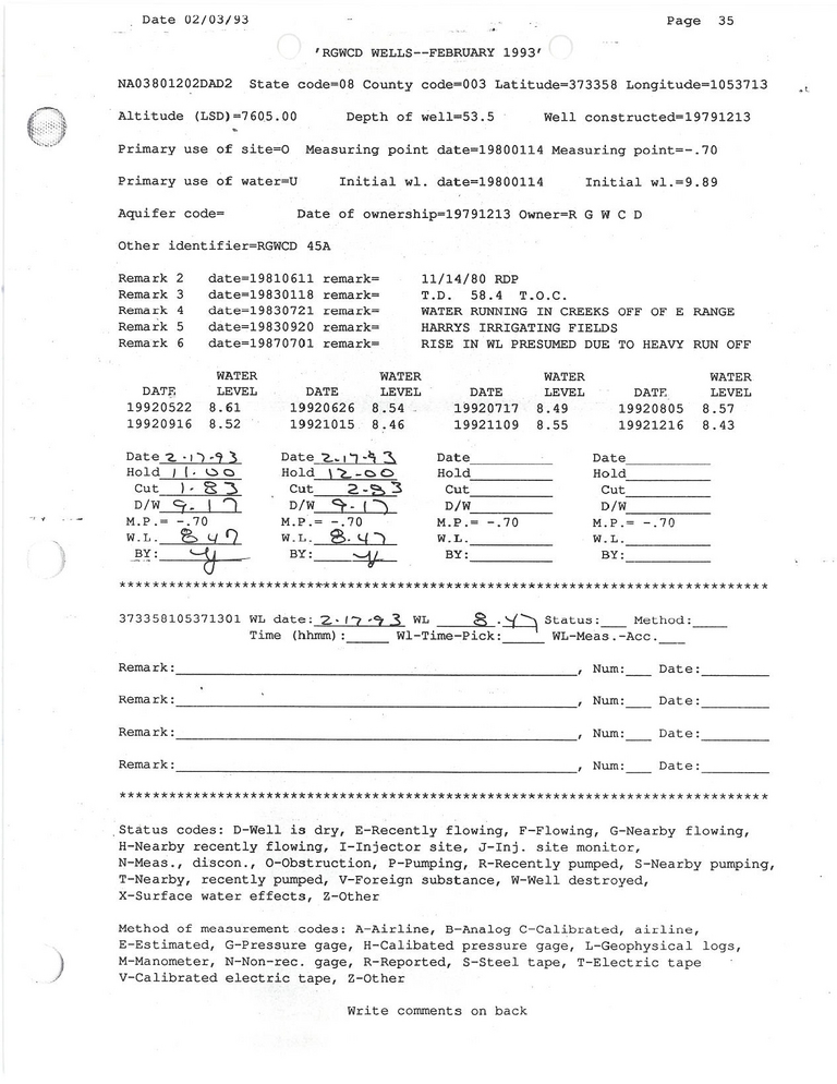 RG45A Field Measurement for 02/1993