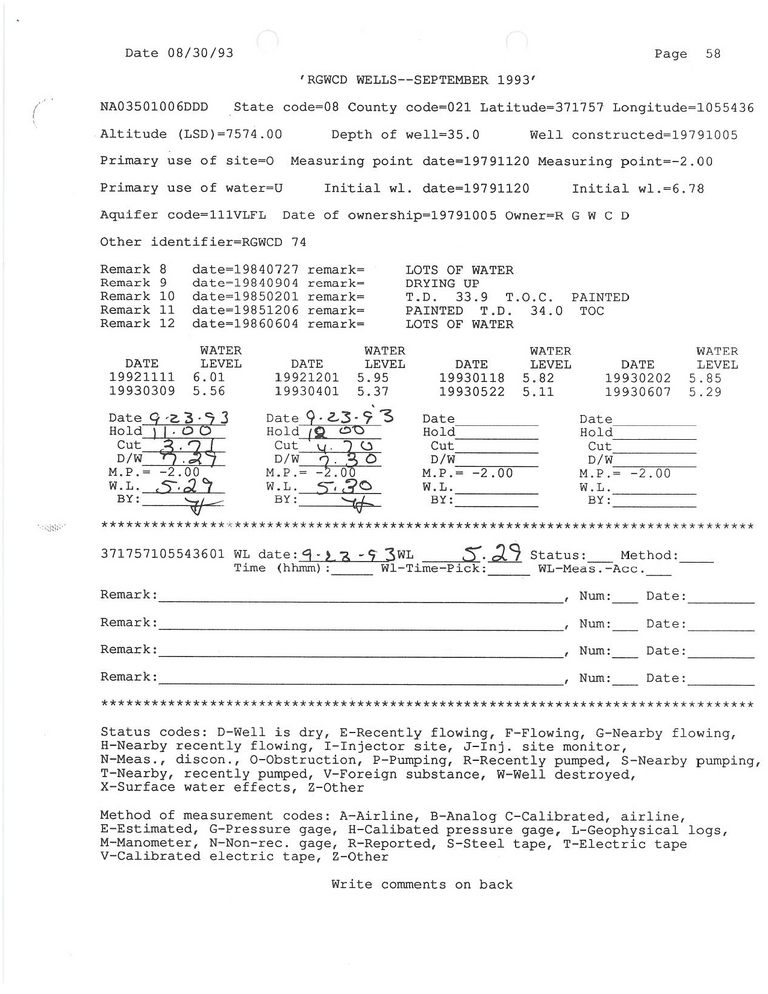 RG74 Field Measurement for 09/1993