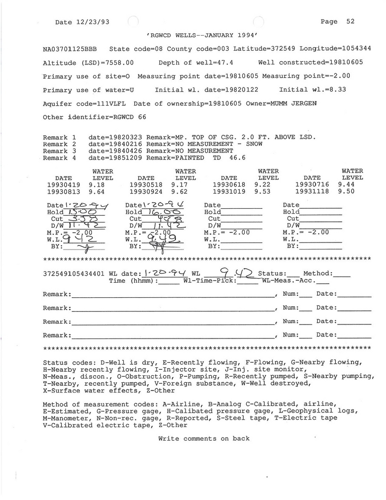 RG66 Field Measurement for 01/1994