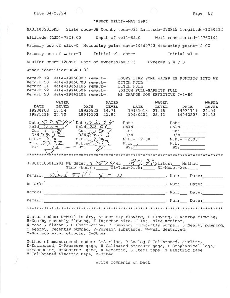 RG86 Field Measurement for 05/1994