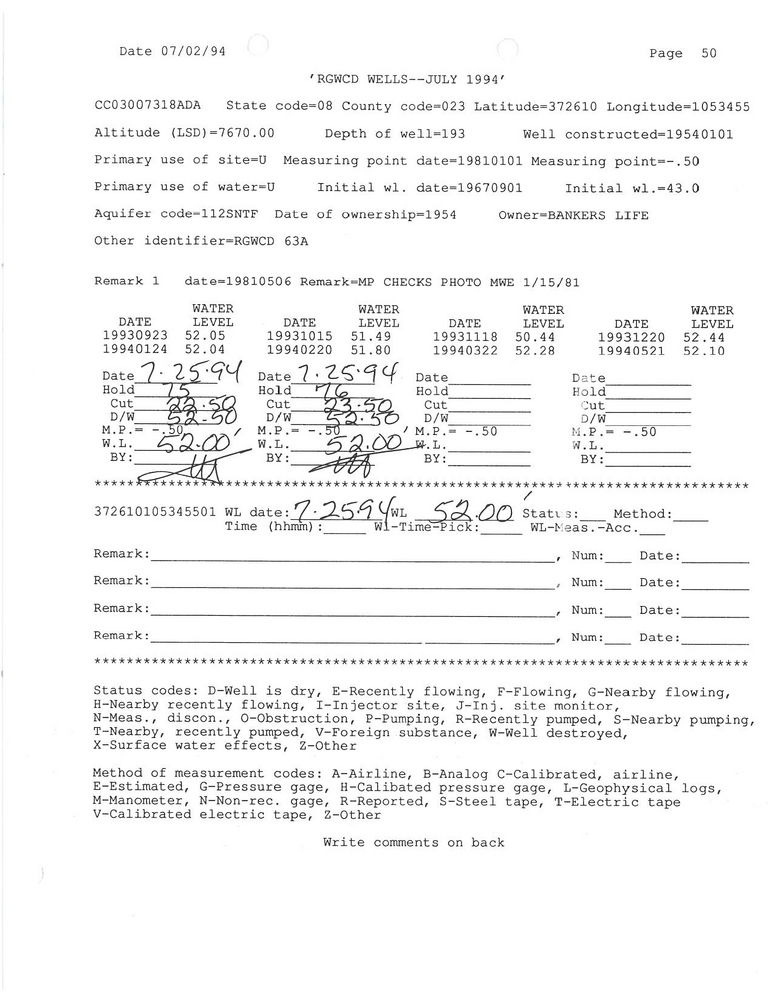 RG63A Field Measurement for 07/1994