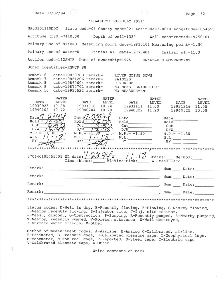 RG88 Field Measurement for 07/1994