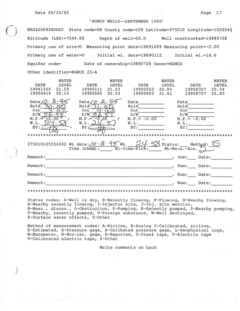 RG23A Field Measurement for 10/1995