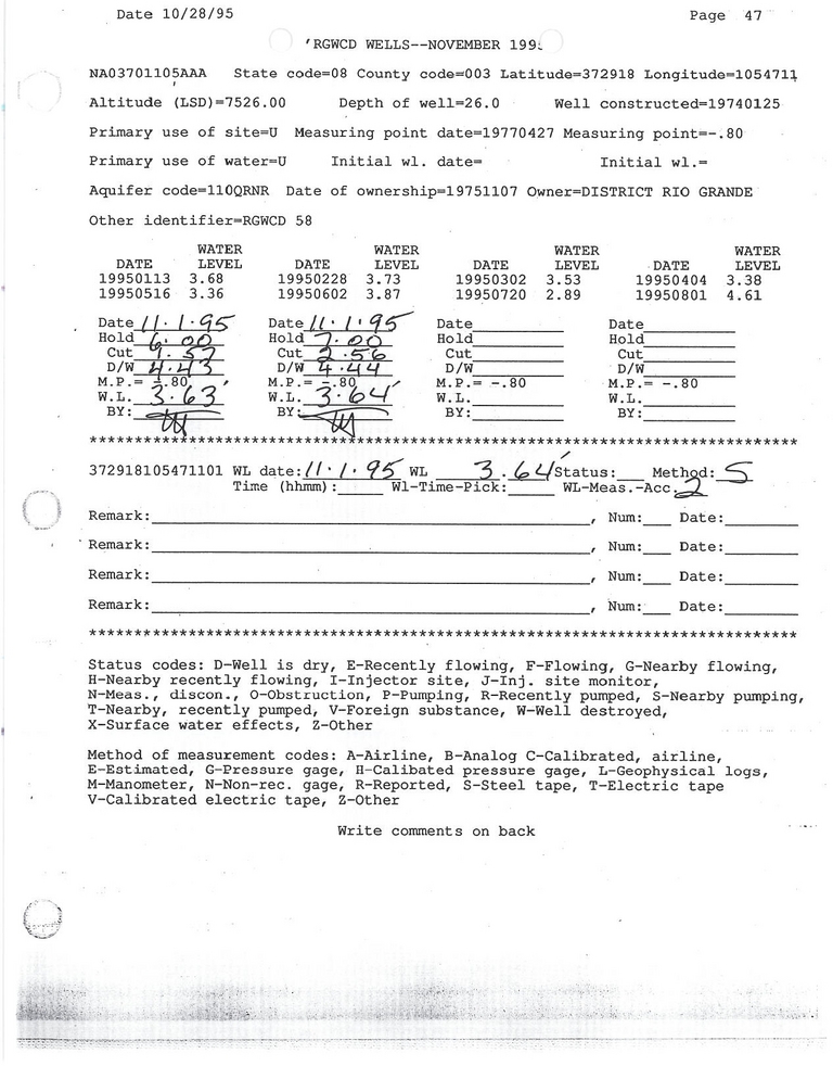 RG58 Field Measurement for 11/1995