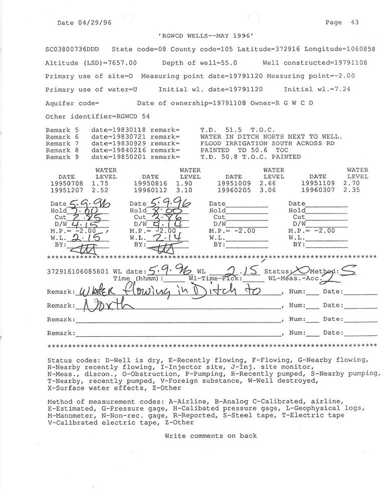 RG54 Field Measurement for 05/1996
