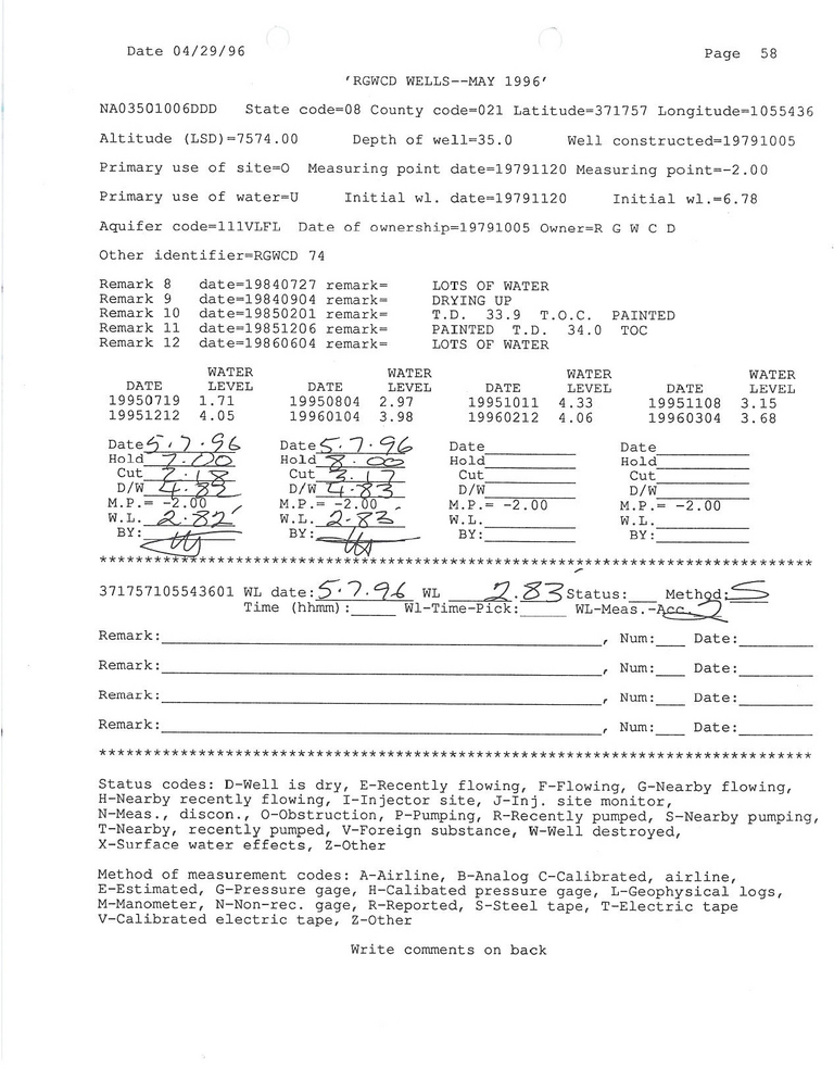 RG74 Field Measurement for 05/1996