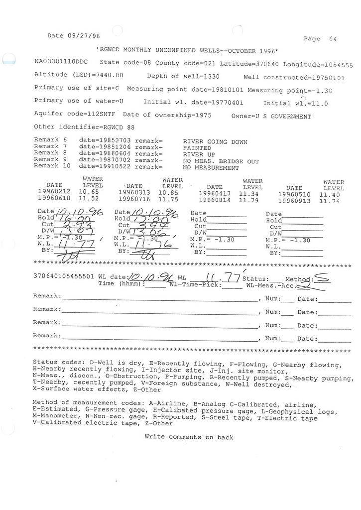 RG88 Field Measurement for 10/1996