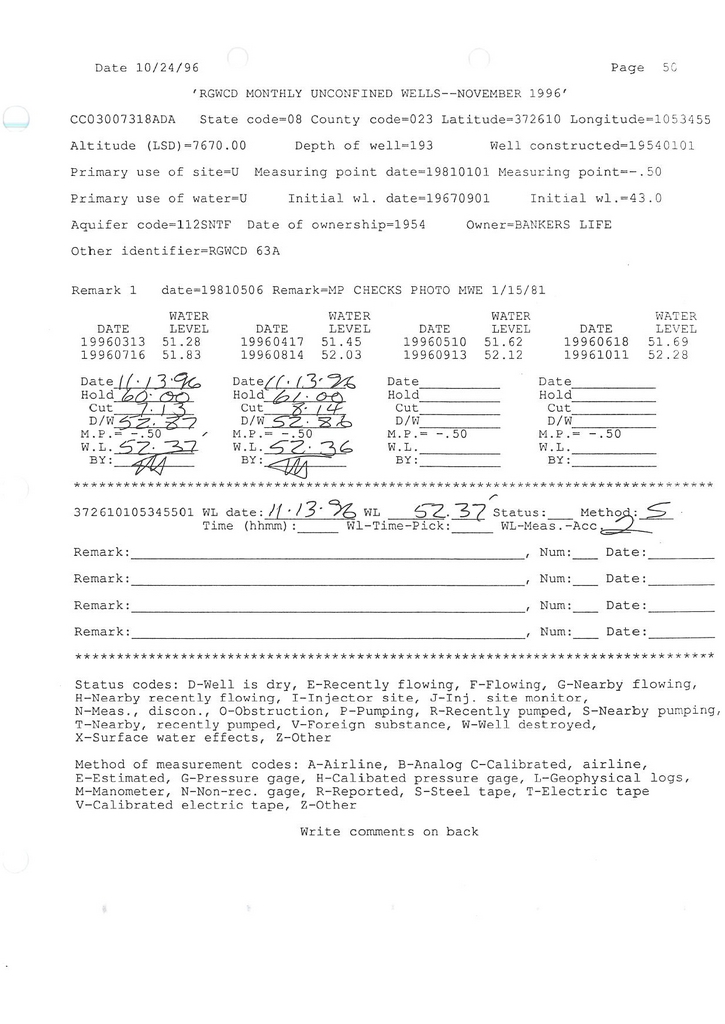 RG63A Field Measurement for 11/1996
