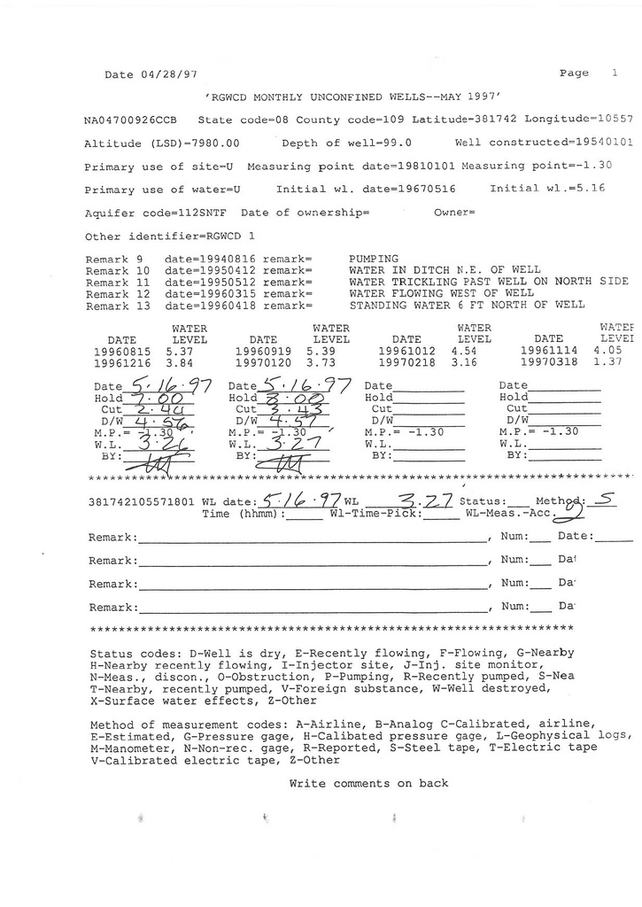 RG01 Field Measurement for 05/1997