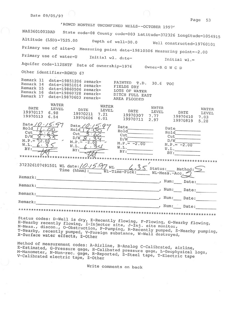 RG67 Field Measurement for 10/1997
