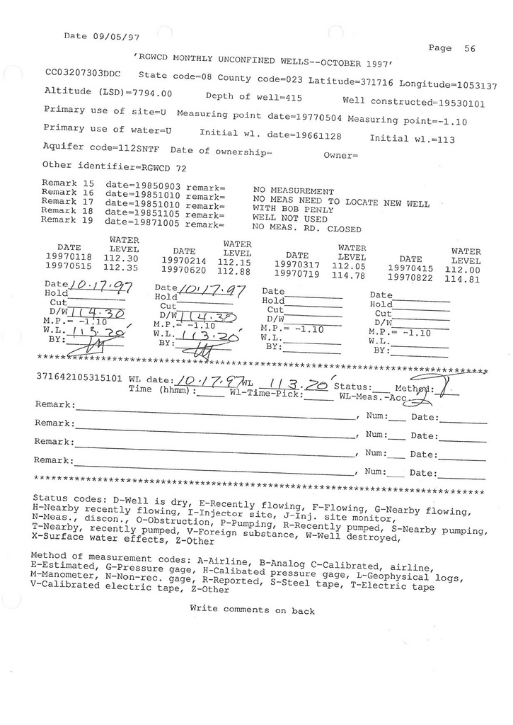 RG72 Field Measurement for 10/1997