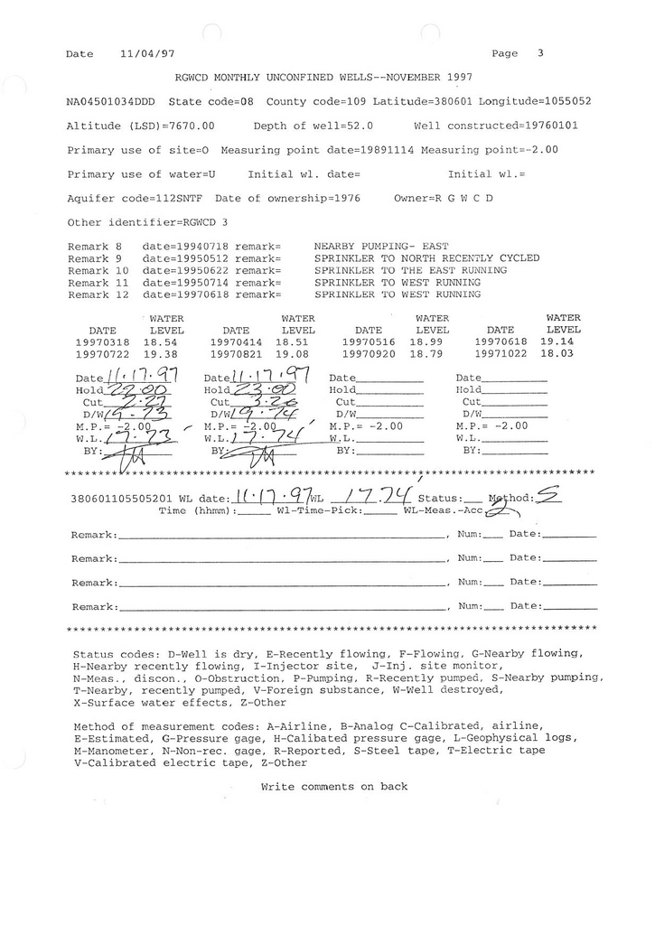 RG03 Field Measurement for 11/1997