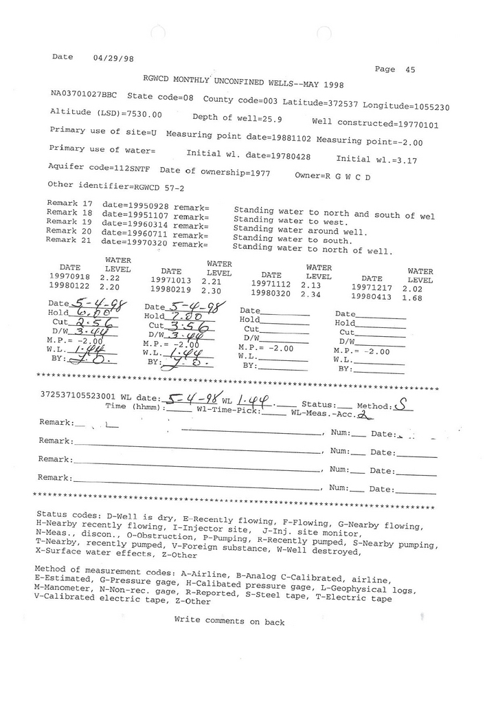 RG57-2 Field Measurement for 05/1998