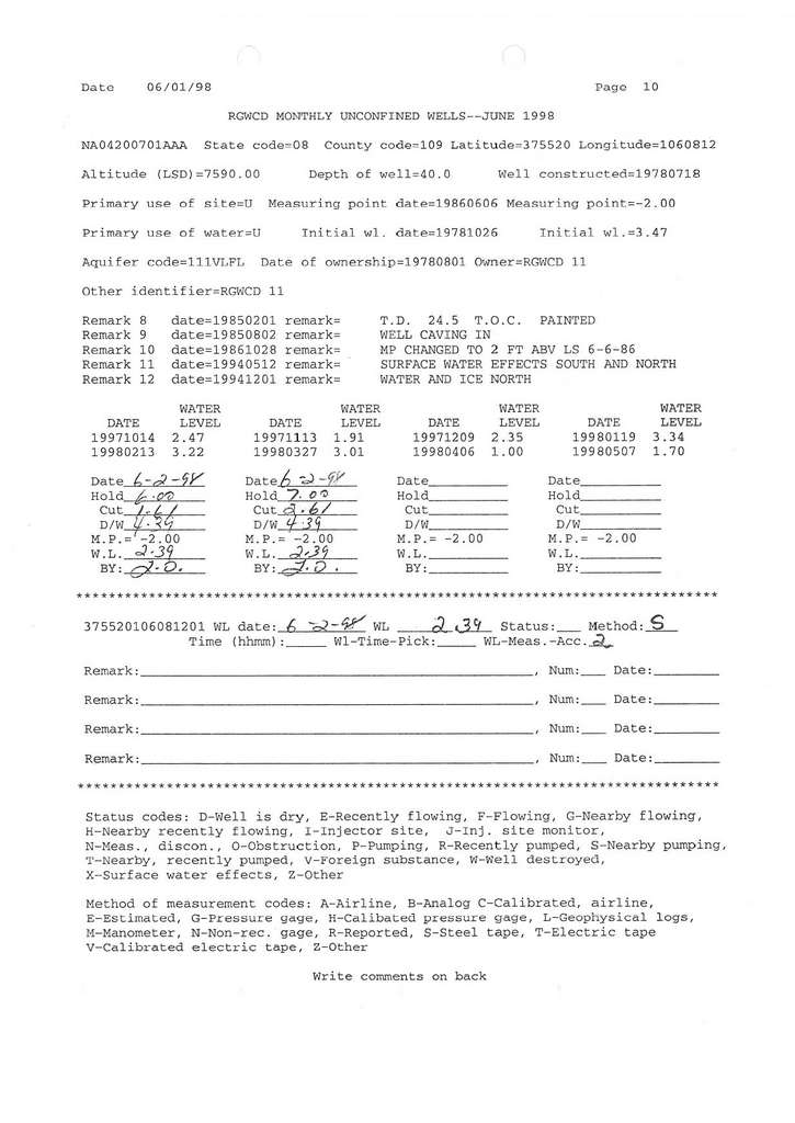 RG11 Field Measurement for 06/1998
