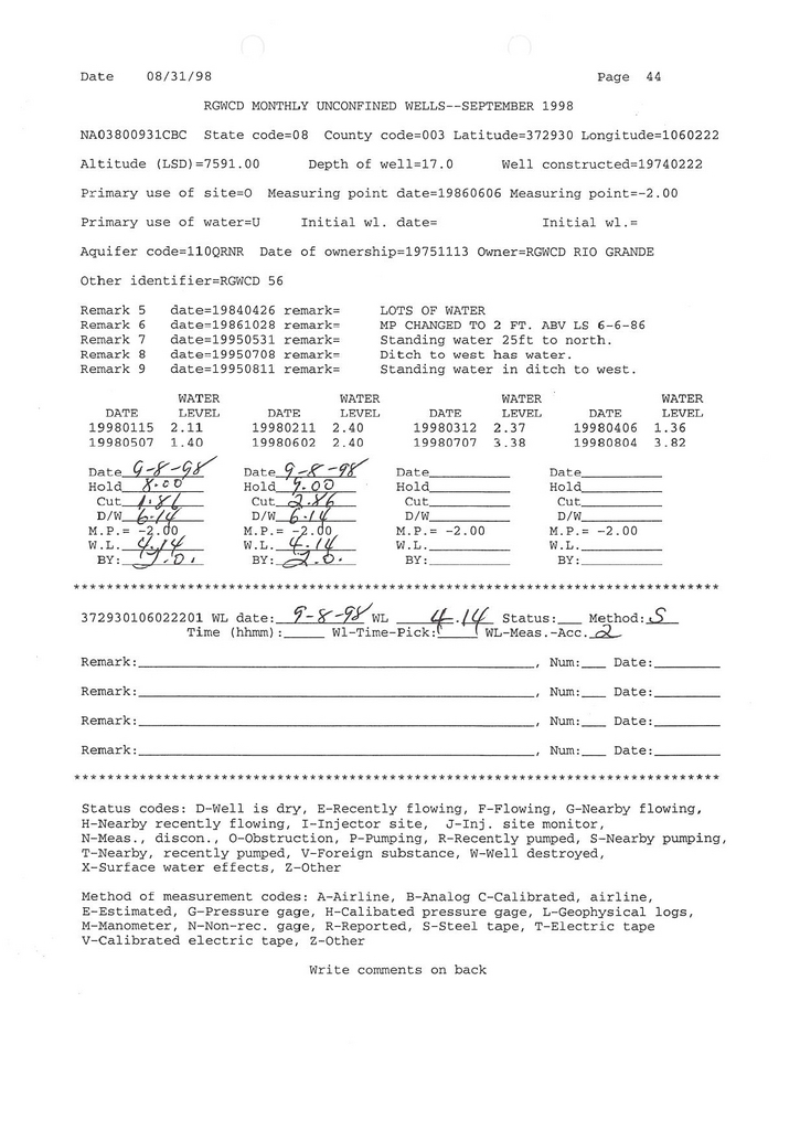 RG56 Field Measurement for 09/1998