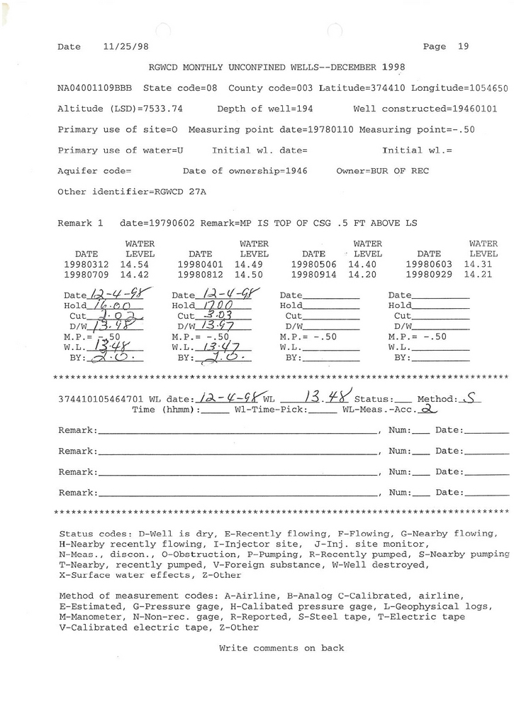 RG27A Field Measurement for 12/1998