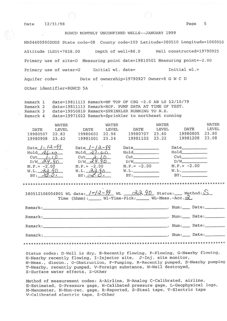 RG05A Field Measurement for 01/1999