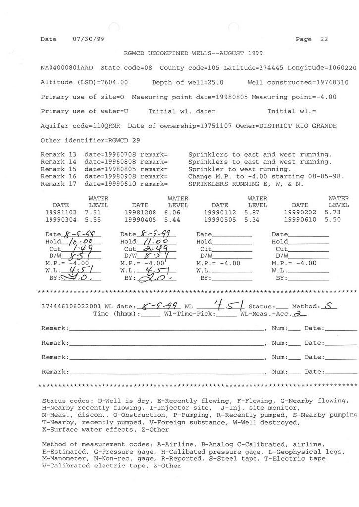 RG29 Field Measurement for 08/1999