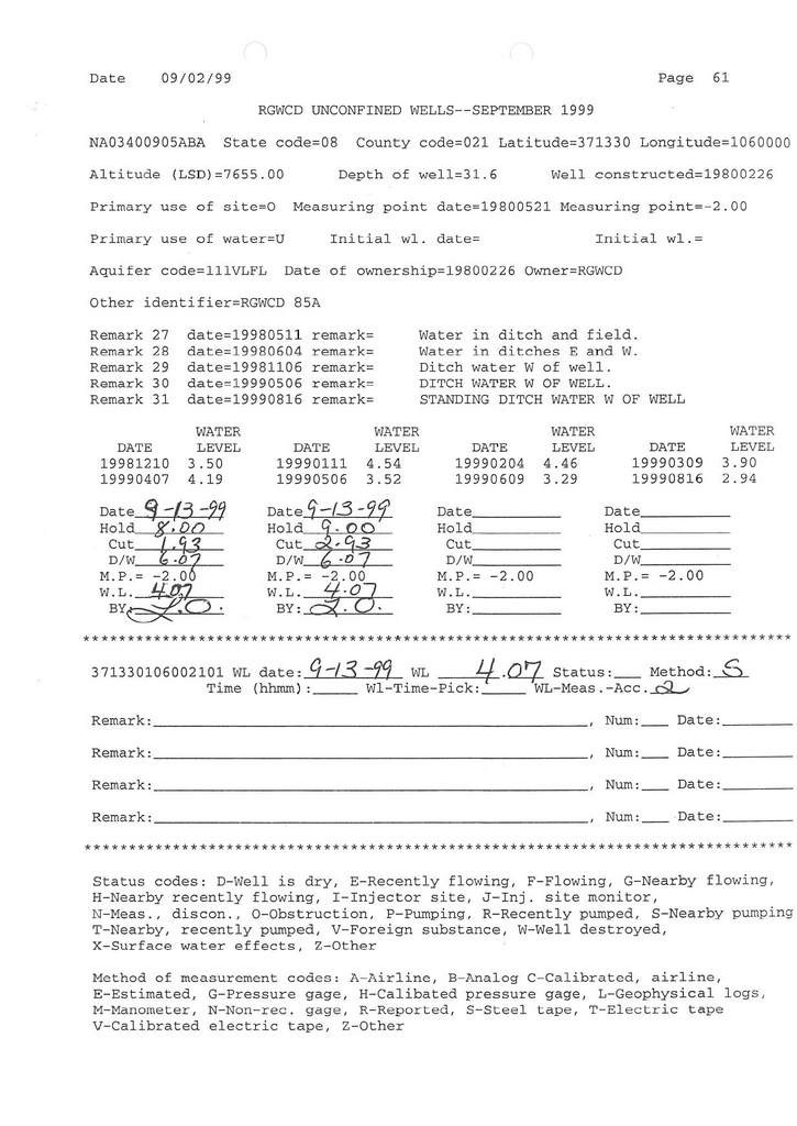 RG85A Field Measurement for 09/1999
