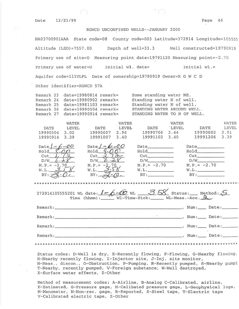RG57A Field Measurement for 01/2000