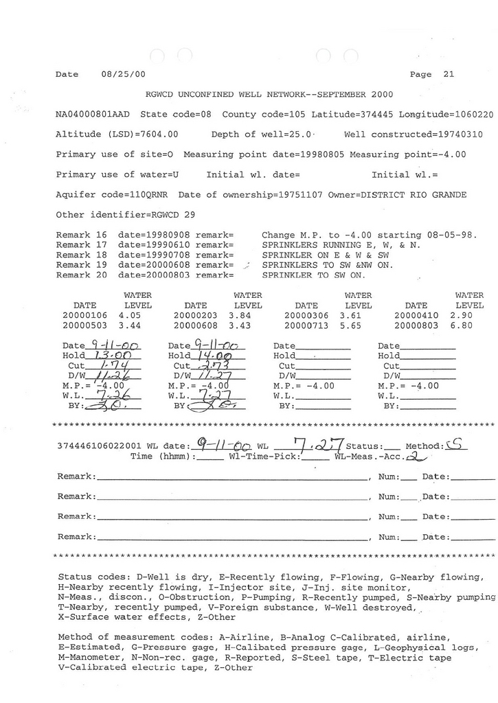 RG29 Field Measurement for 09/2000