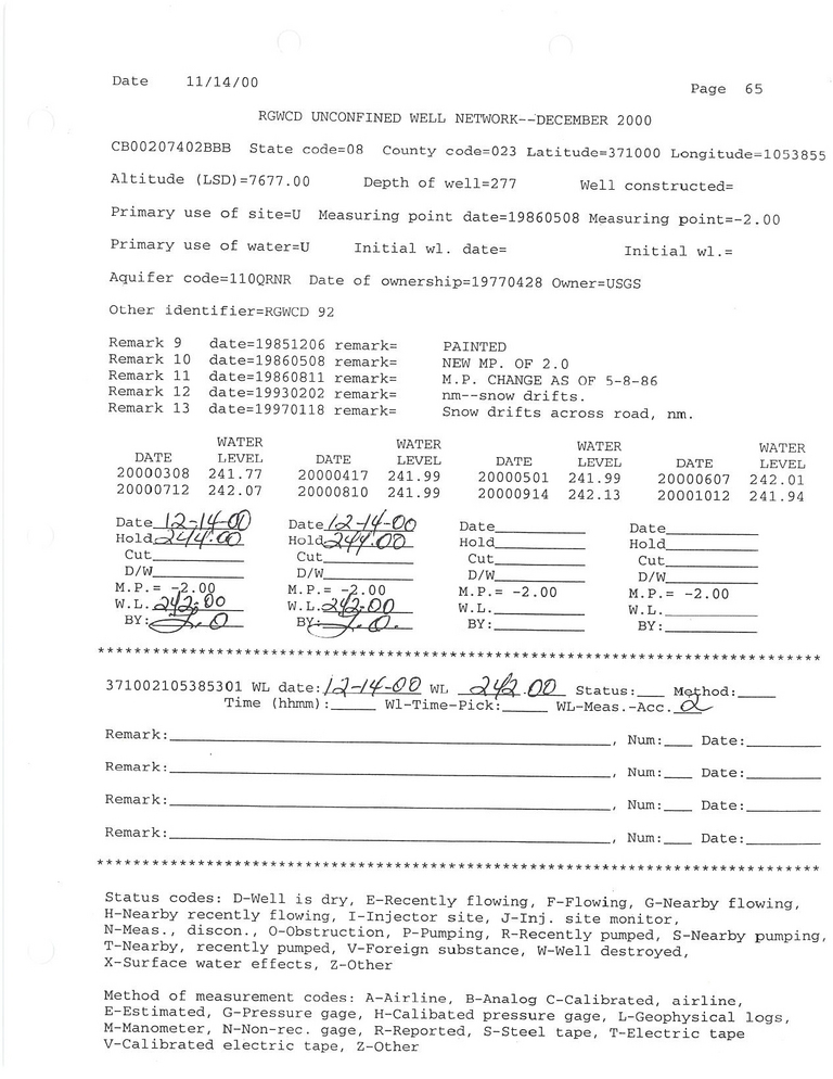 RG92 Field Measurement for 12/2000
