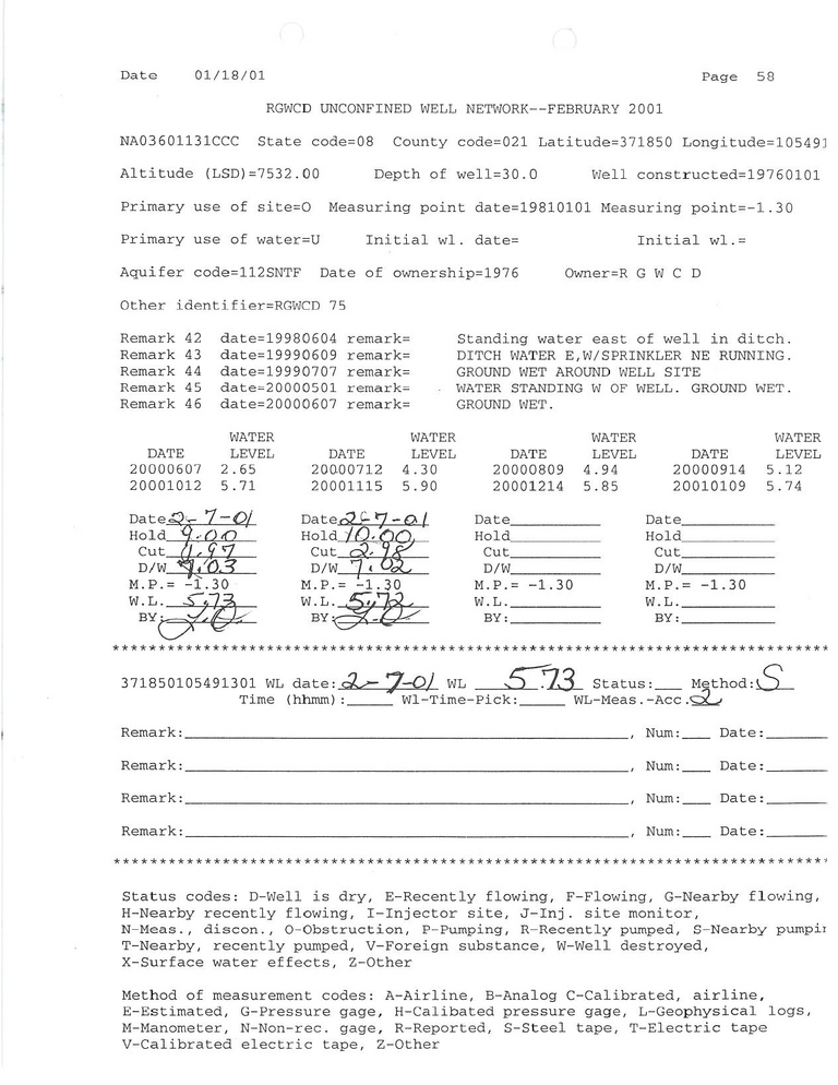 RG75 Field Measurement for 02/2001