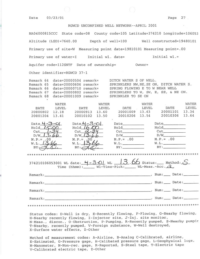 RG37-1 Field Measurement for 04/2001