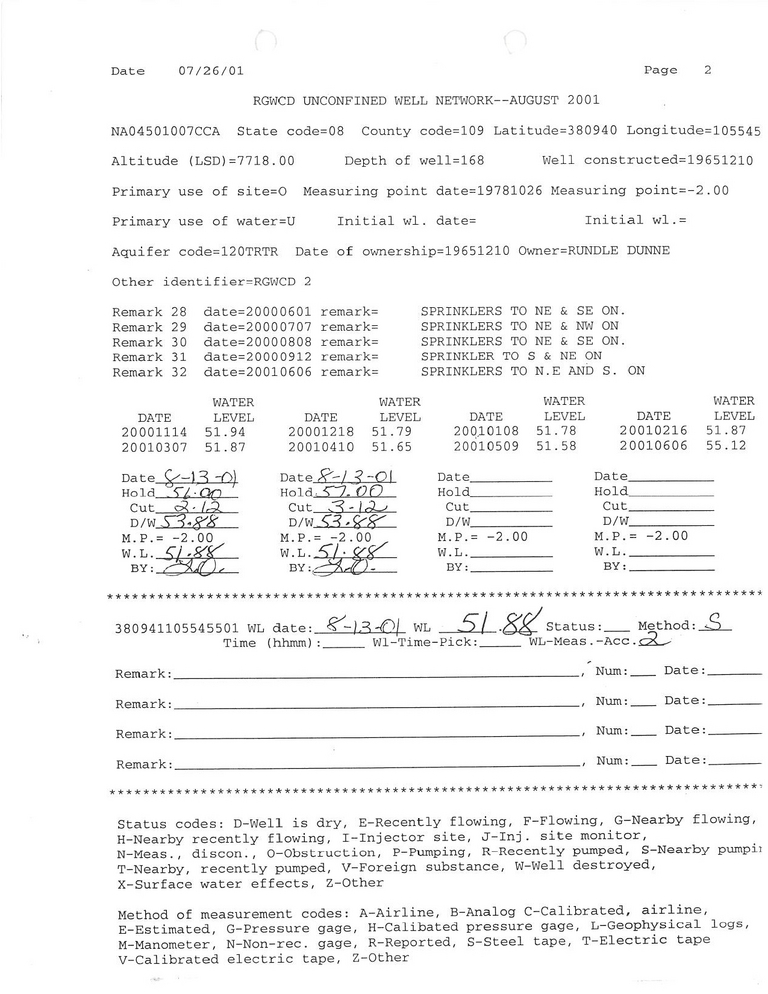 RG02 Field Measurement for 08/2001