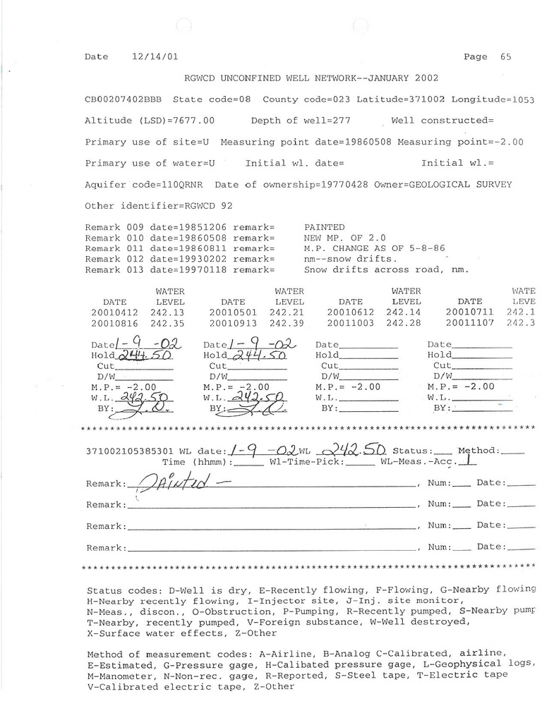 RG92 Field Measurement for 01/2002
