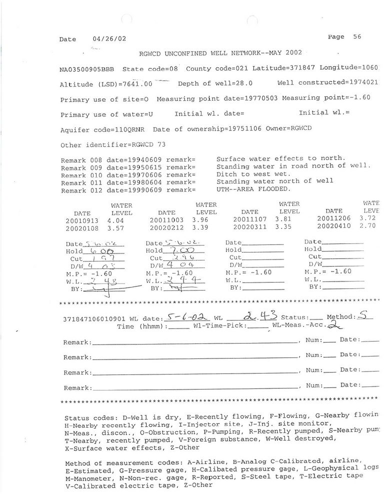 RG73 Field Measurement for 05/2002