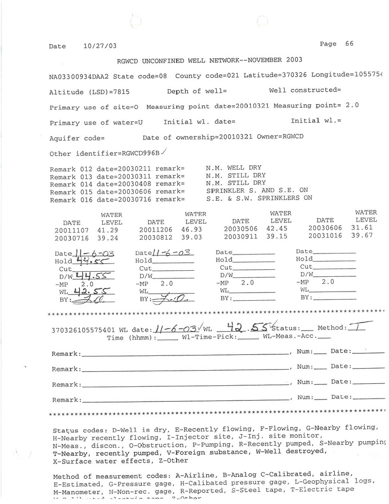 RG96B Field Measurement for 11/2003