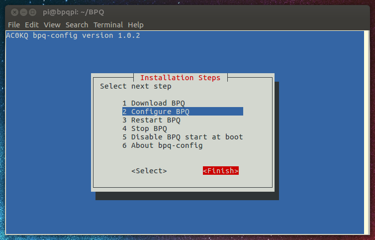 bpq-config will detect a fresh install by the absence of a .bpqconfig file. Select Quick Install unless you know what you are doing.